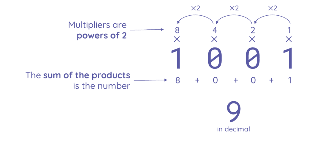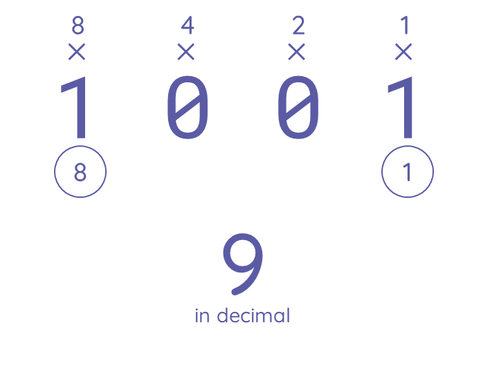 ‘Translate’ binary numbers back to the familiar decimal system.