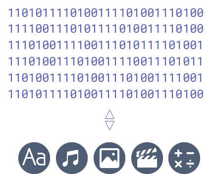 - Provide examples of the different ways that binary digits are physically represented in digital devices, including electricity, magnetism, light, and even holes in paper.