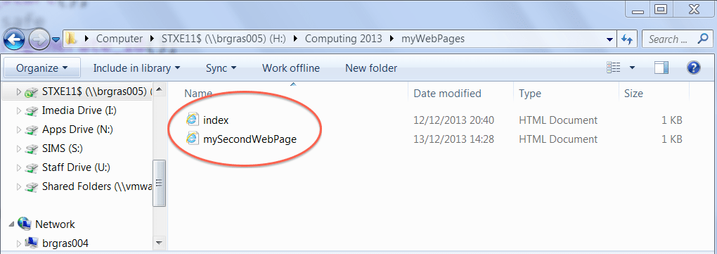 2. Save your second page as mySecondWebPage.html inside the same folder as your index.html.