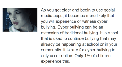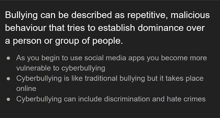 - The slides below are from presentations on cyberbullying so focus on how the content is presented.