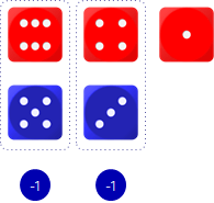 - Roll – The attacker rolls three dice. The defender rolls two.